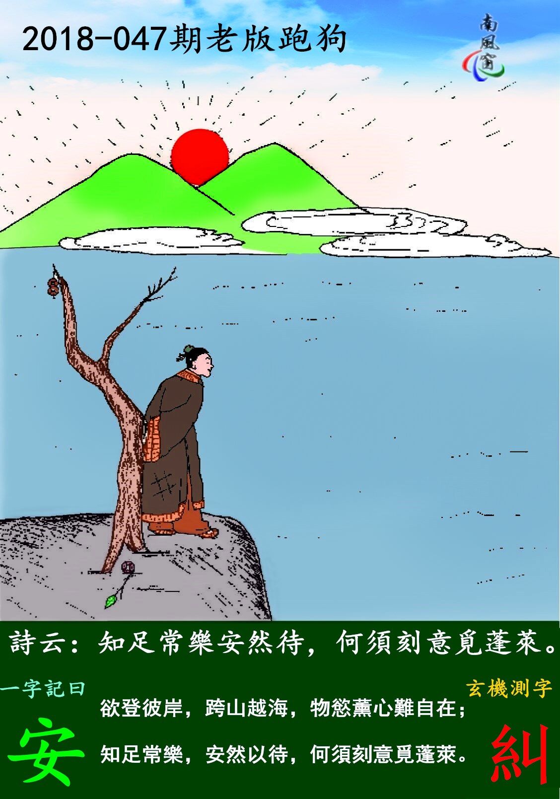| 主题 :047期:老版跑狗一字記之曰:【安】玄機測字《糾》 |