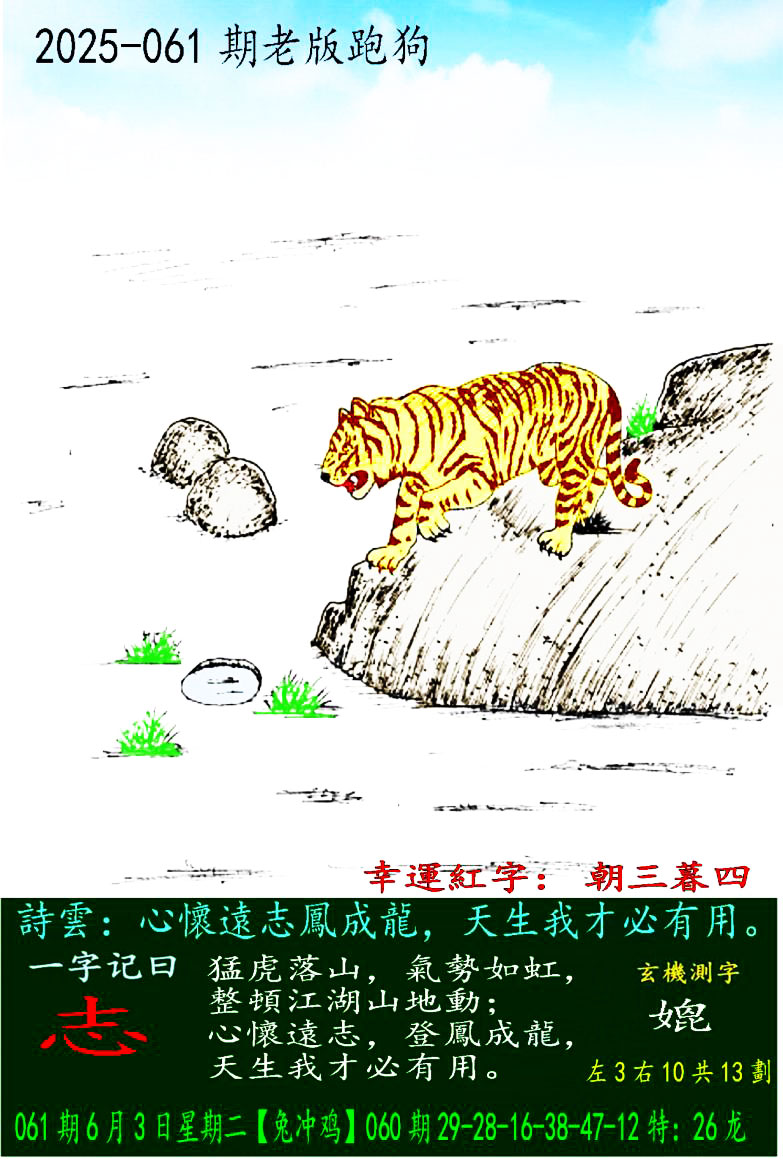 | 主题 :061期老版跑狗一字記之曰:【志】 玄機測字:《媲》 |