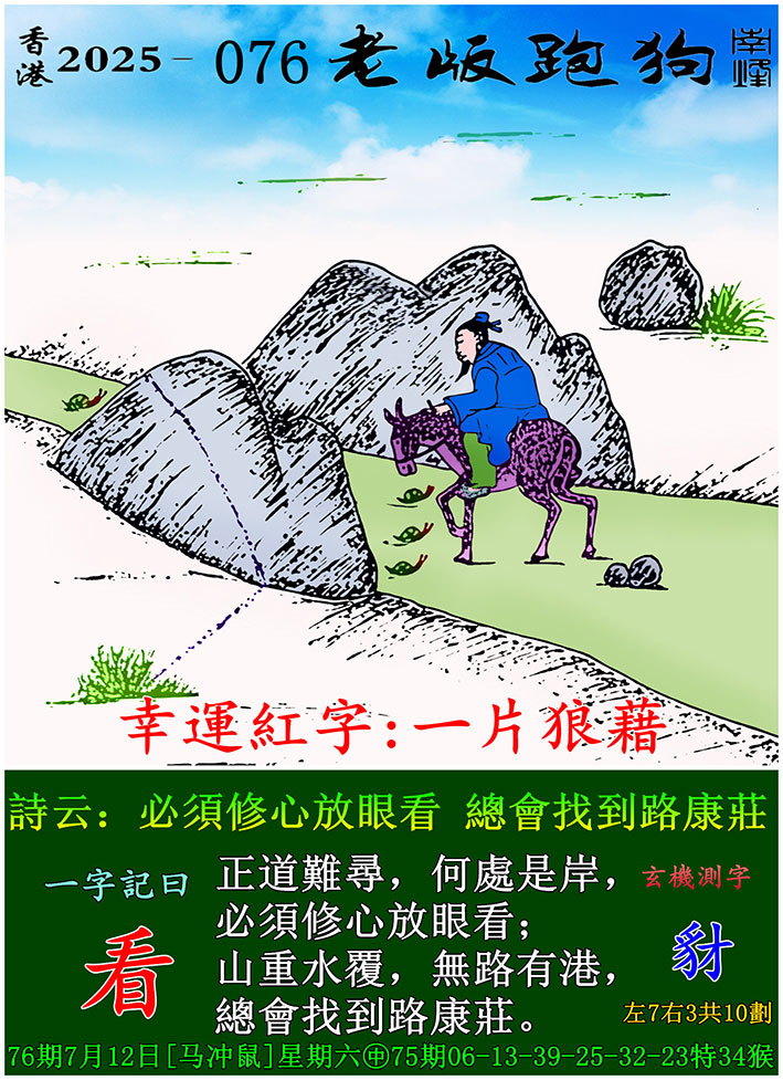 | 主题 :076期老版跑狗一字記之曰:【看】 玄機測字:《豺》 |
