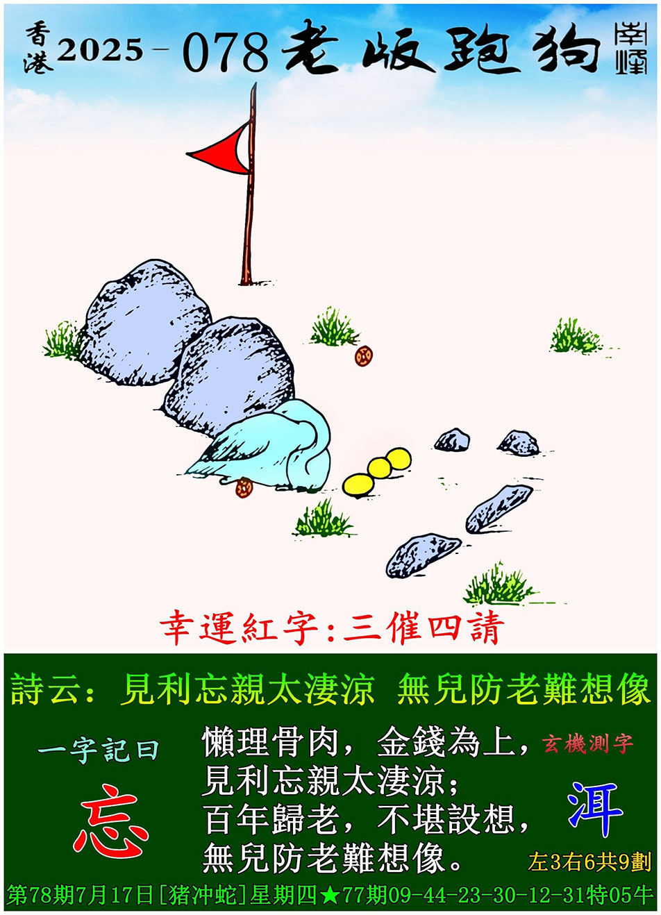 | 主题 :078期老版跑狗一字記之曰:【忘】 玄機測字:《洱》 |