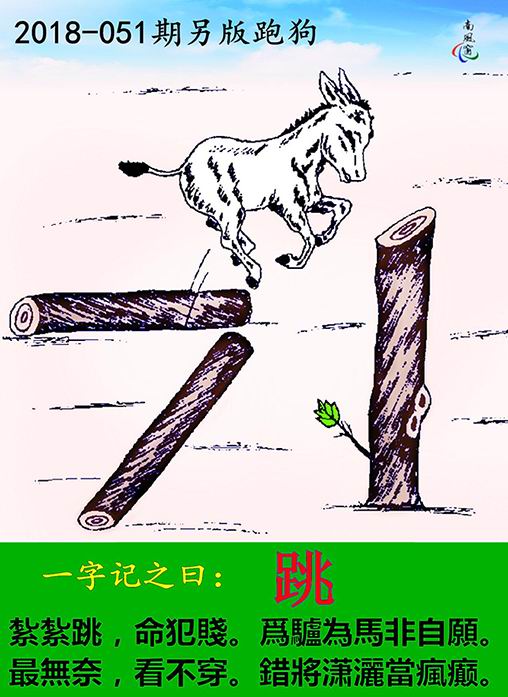 | 主题 :051期另版跑狗一字記之曰:【跳】 紮紮跳,命犯賤。為驢為馬非自 |