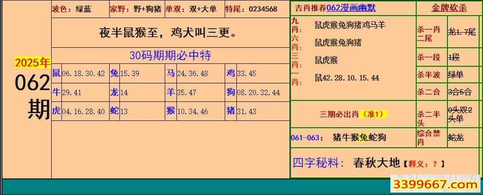 | 主题 :062期:小鱼儿30码期期中+幽默猜测 |