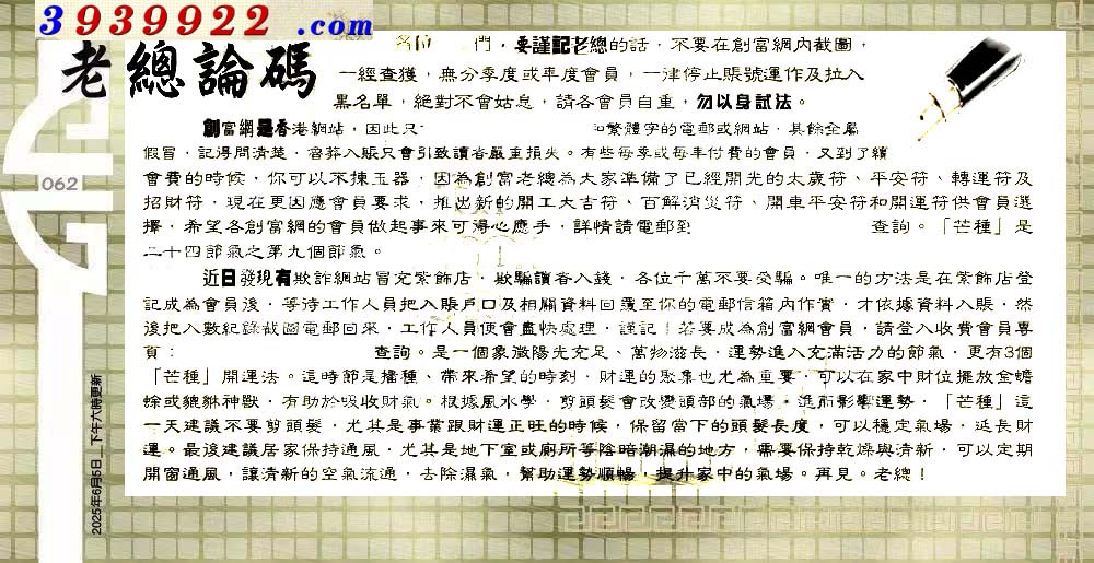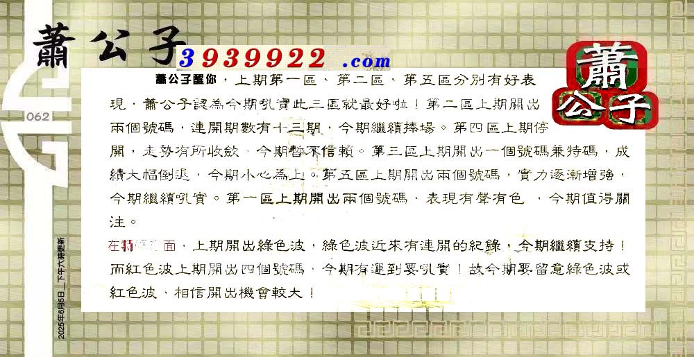 062期:六合皇金句/老总论码/萧公子/林大师/五行夺码/老总信箱截