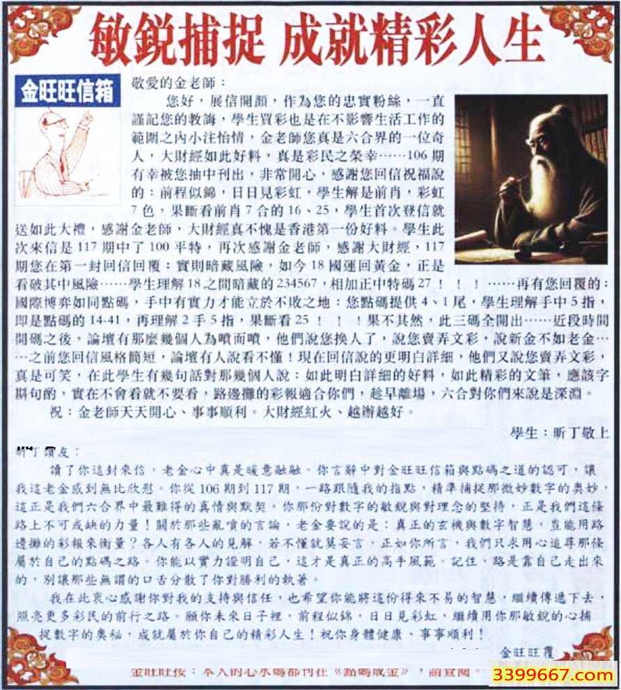 | 主题 :063期:金旺旺信箱彩民推荐→→《敏锐捕捉 成就精彩人生》 |