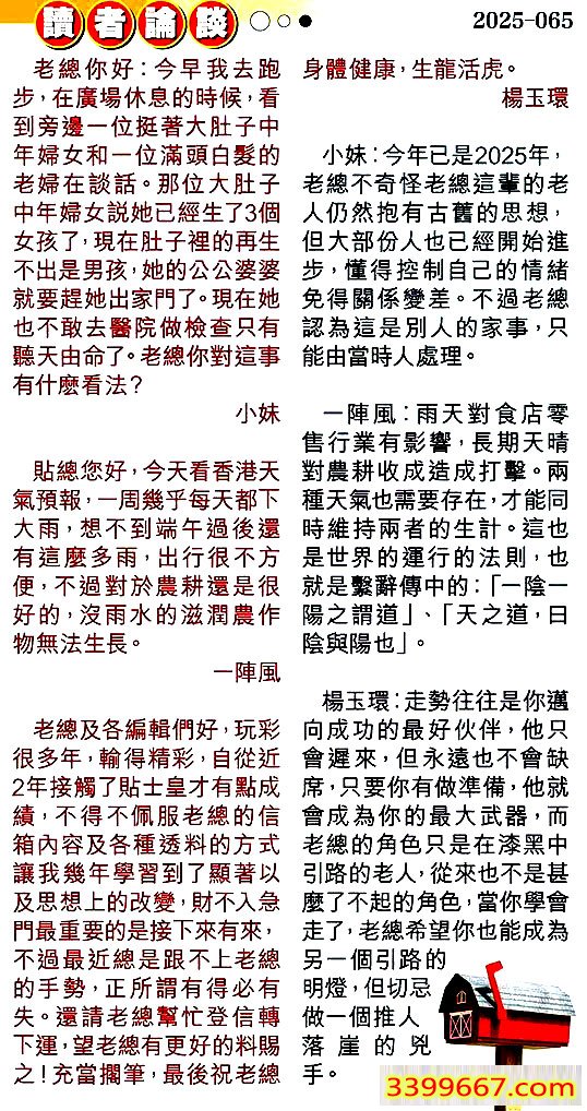 | 主题 :065期:彩民推荐〖貼信讀者論壇〗 |