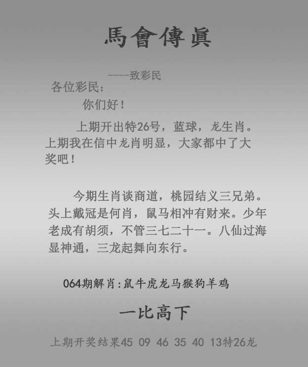 | 主题 :065期:正马会传真 |