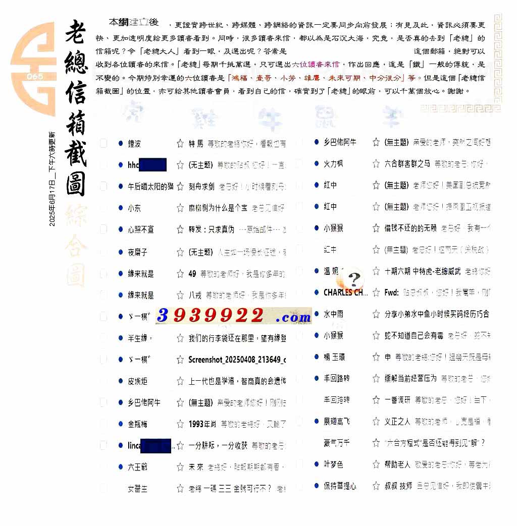 主题 :065期:六合皇金句/老总论码/萧公子/林大师/五行夺码/老总信箱截