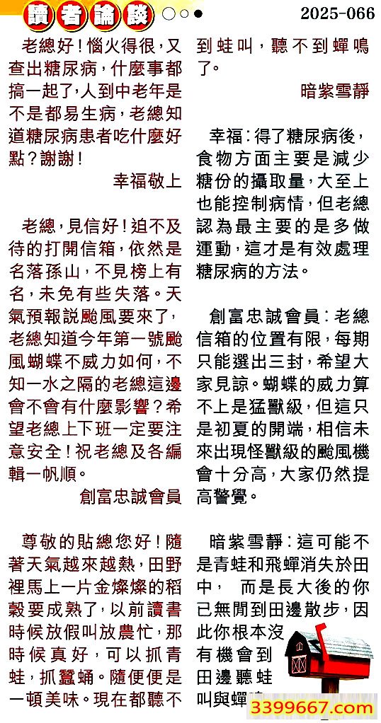 | 主题 :066期:彩民推荐〖貼信讀者論壇〗 |