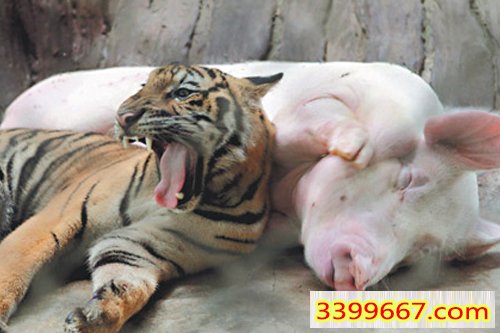 2025年第071幽默猜测(午睡时光):老虎在森林中打盹,发现一只小猪也来躺下。老虎本想吓唬它,却被小猪温暖的鼾声感染。它们就这样靠在一起,做了个香甜的梦。.....本期图片会给我们的带来什么样的玄机呢?
