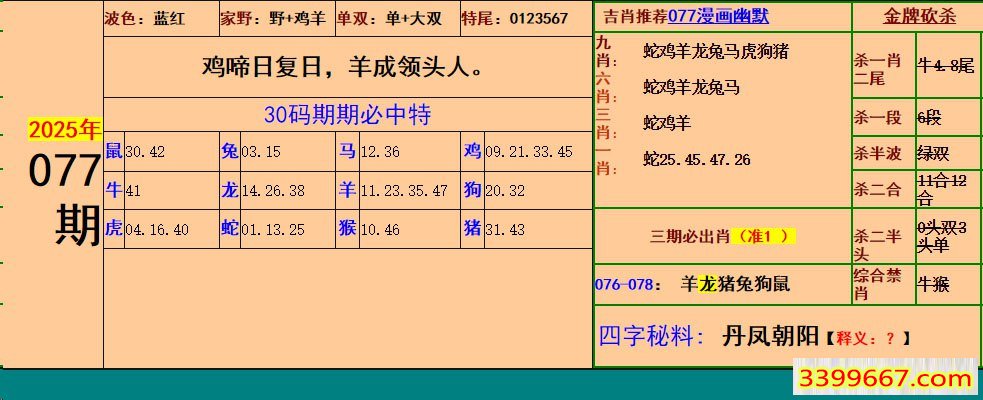 | 主题 :077期:小鱼儿30码期期中+幽默猜测 |