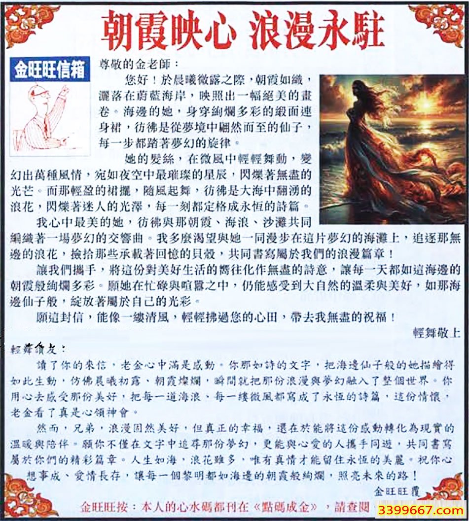 | 主题 :079期:金旺旺信箱彩民推荐→→《朝霞映心 浪漫永駐》 |