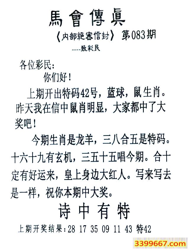 083期:首发推荐:≮馬會傳眞≯→(香港正版)