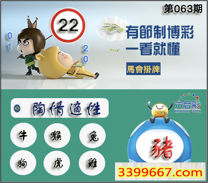 063期正版彩图挂:22 爆:猪 挂牌成语:陶情适性 挂牌出肖:牛猴兔狗虎鸡