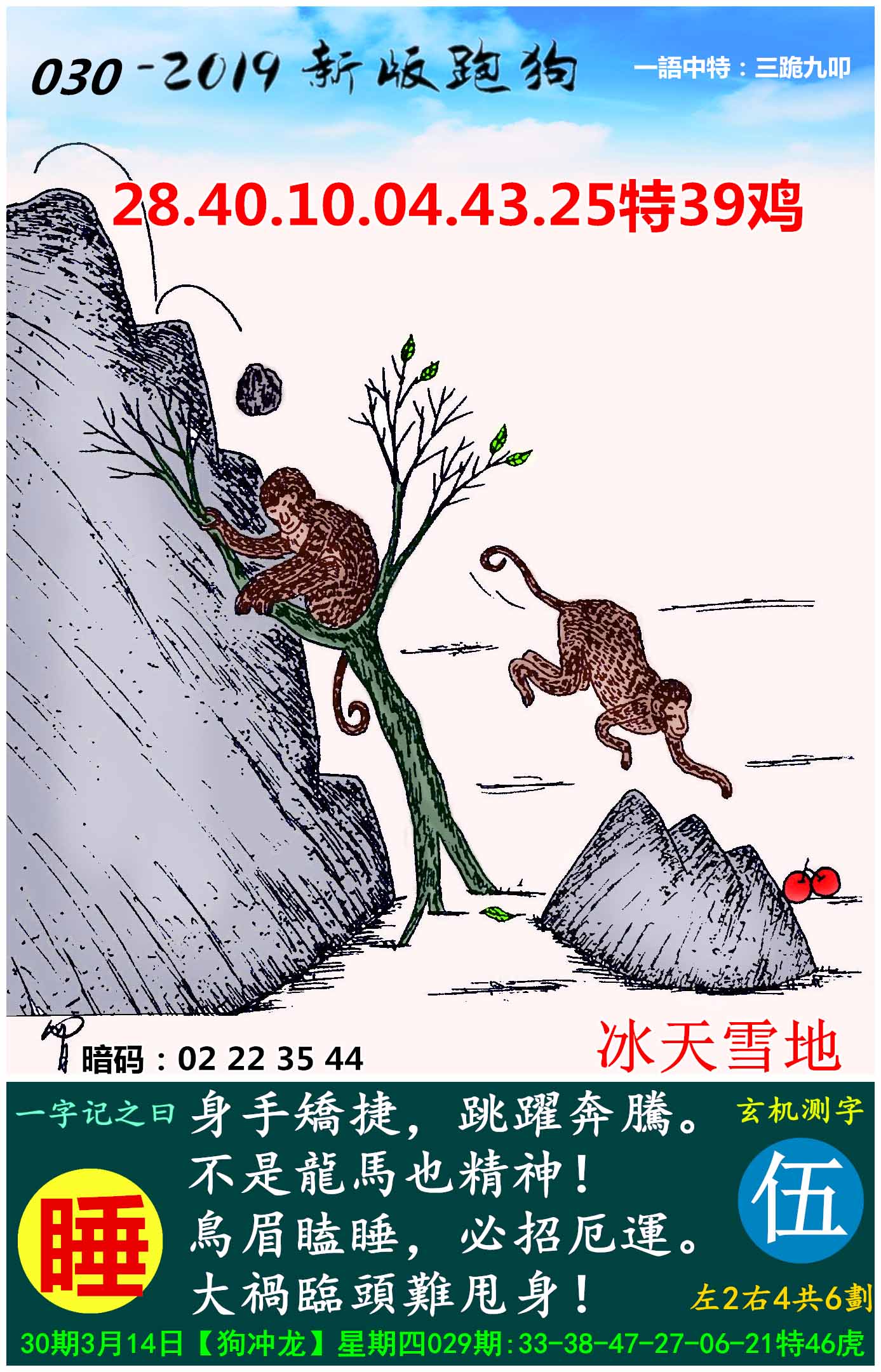 | 主题 :049期:新版跑狗一字記之曰【睡】玄機測字:《法》 |