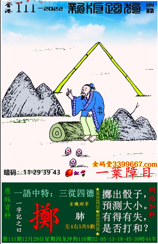 | 主题 :111期:新版跑狗一字記之曰【擲】玄機測字:《肺》 |