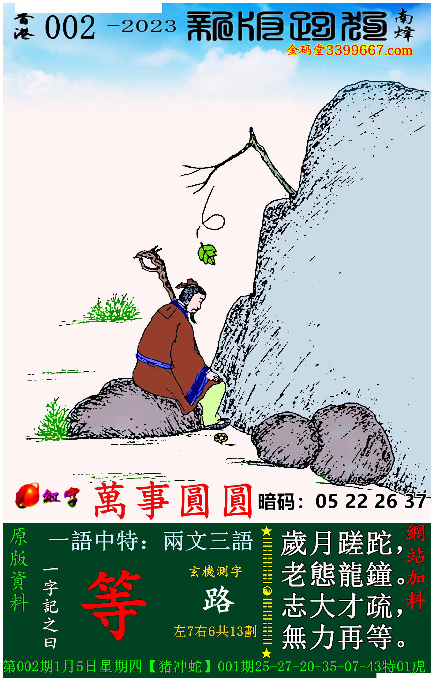 | 主题 :002期:新版跑狗一字記之曰【等】玄機測字:《路》 |
