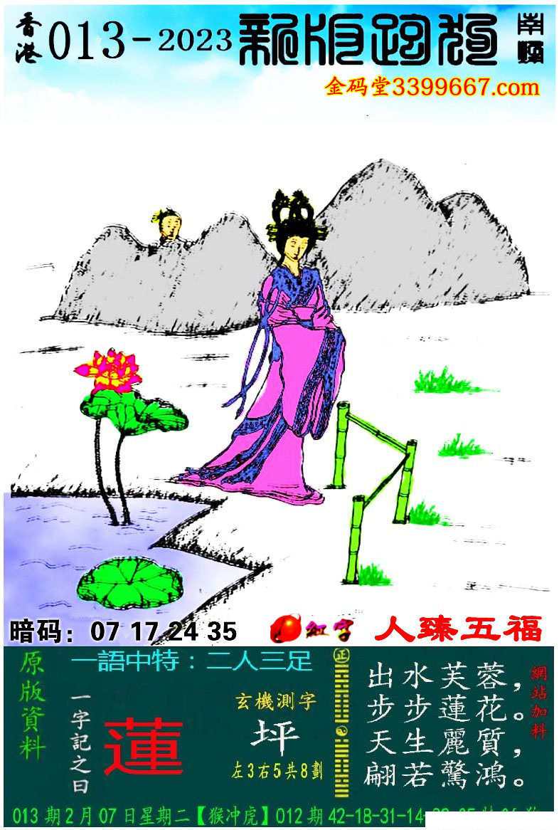 | 主题 :013期:新版跑狗一字記之曰【蓮】玄機測字:《坪》 |