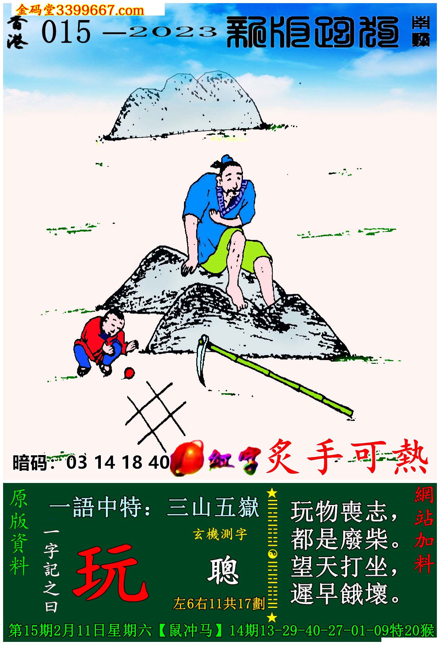 | 主题 :015期:新版跑狗一字記之曰【玩】玄機測字:《聰》 |
