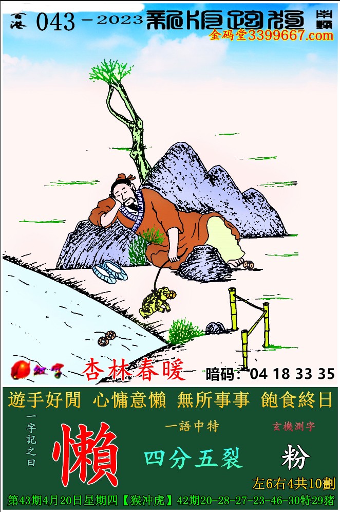 | 主题 : 043期:新版跑狗一字記之曰【懶】 玄機測字:《粉》 |