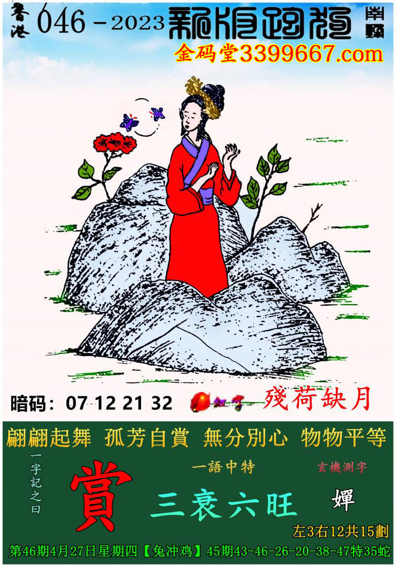 | 主题 :046期:新版跑狗一字記之曰【賞】玄機測字:《嬋》 |