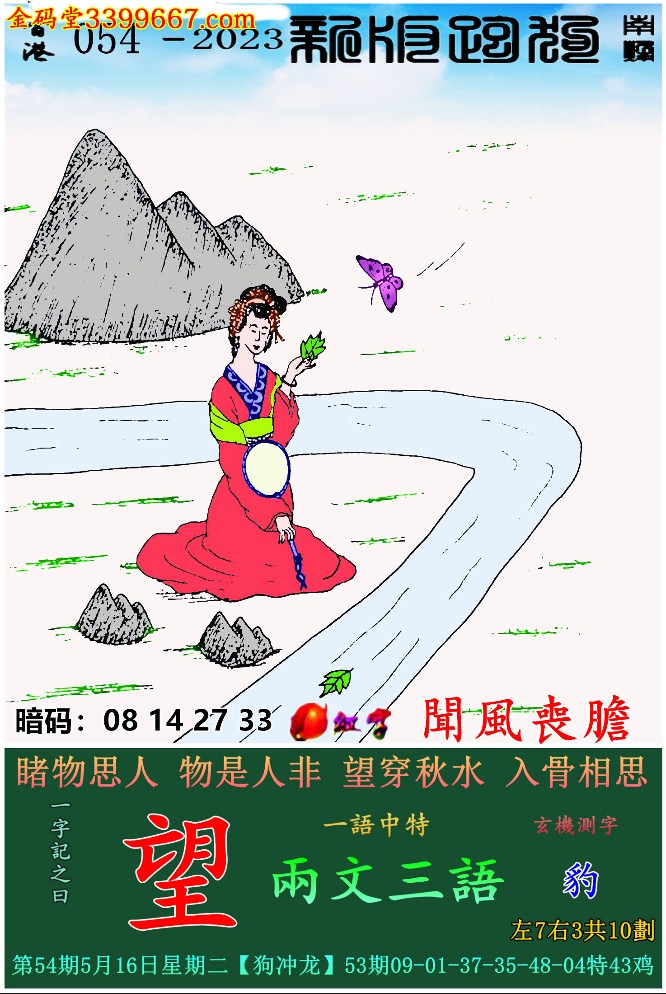 | 主题 : 054期:新版跑狗一字記之曰【望】 玄機測字:《豹》 |