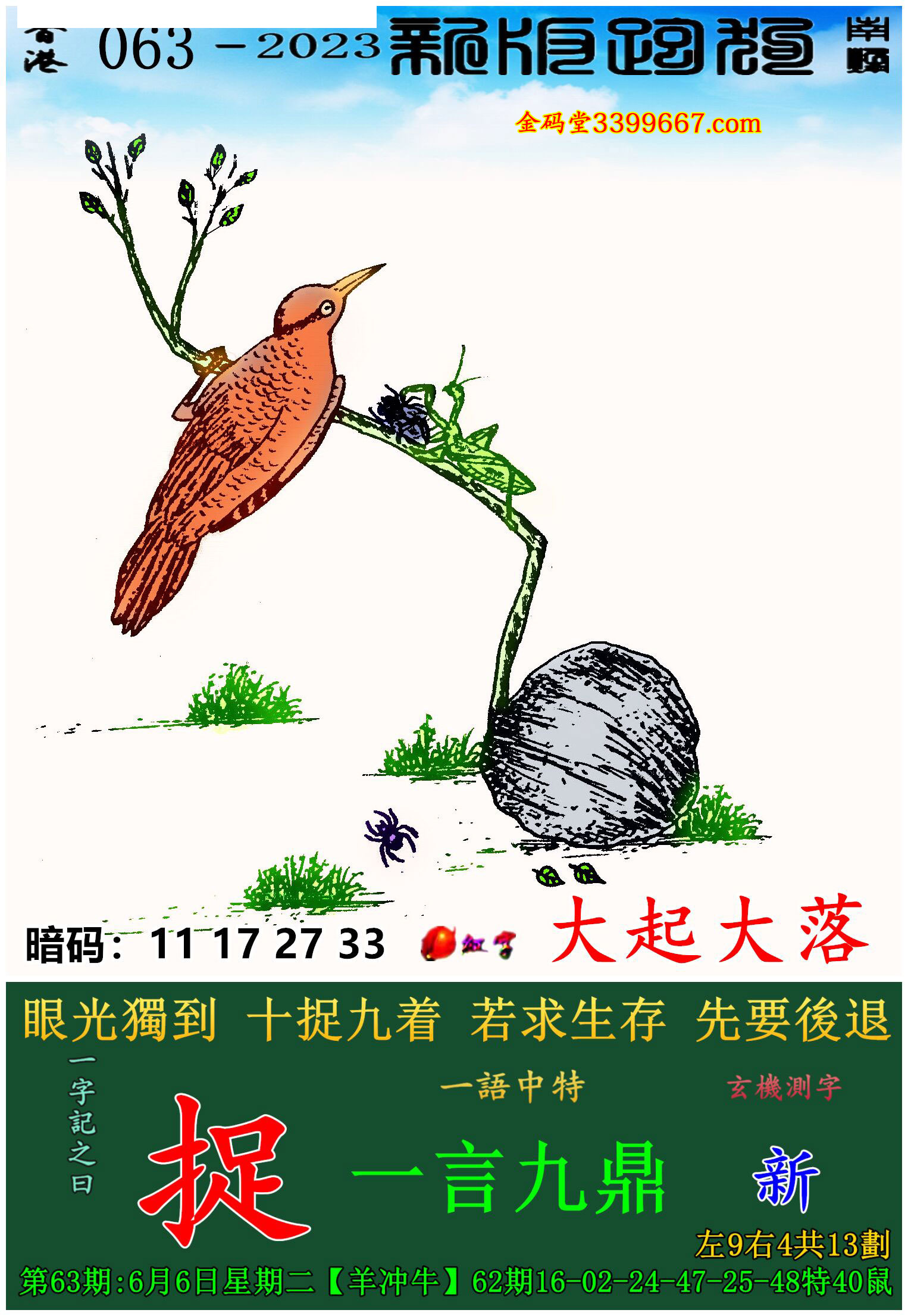 | 主题 :063期:新版跑狗一字記之曰【捉】玄機測字:《新》 |