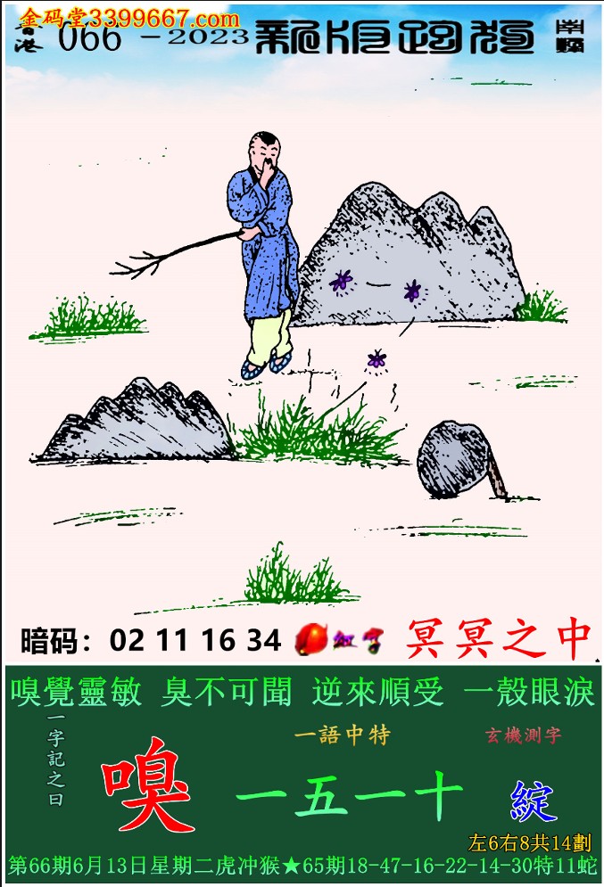 | 主题 : 066期:新版跑狗一字記之曰【嗅】 玄機測字:《綻》 |