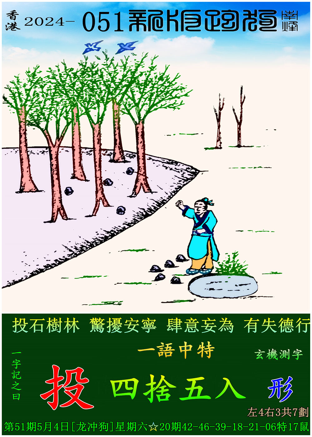 | 主题 :051期:新版跑狗一字記之曰【投】 玄機測字:【形】 |