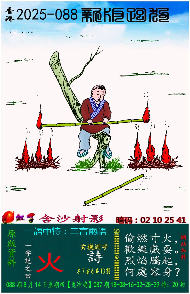 主题 :088期:新版跑狗一字記之曰【火】 玄機測字:【詩】