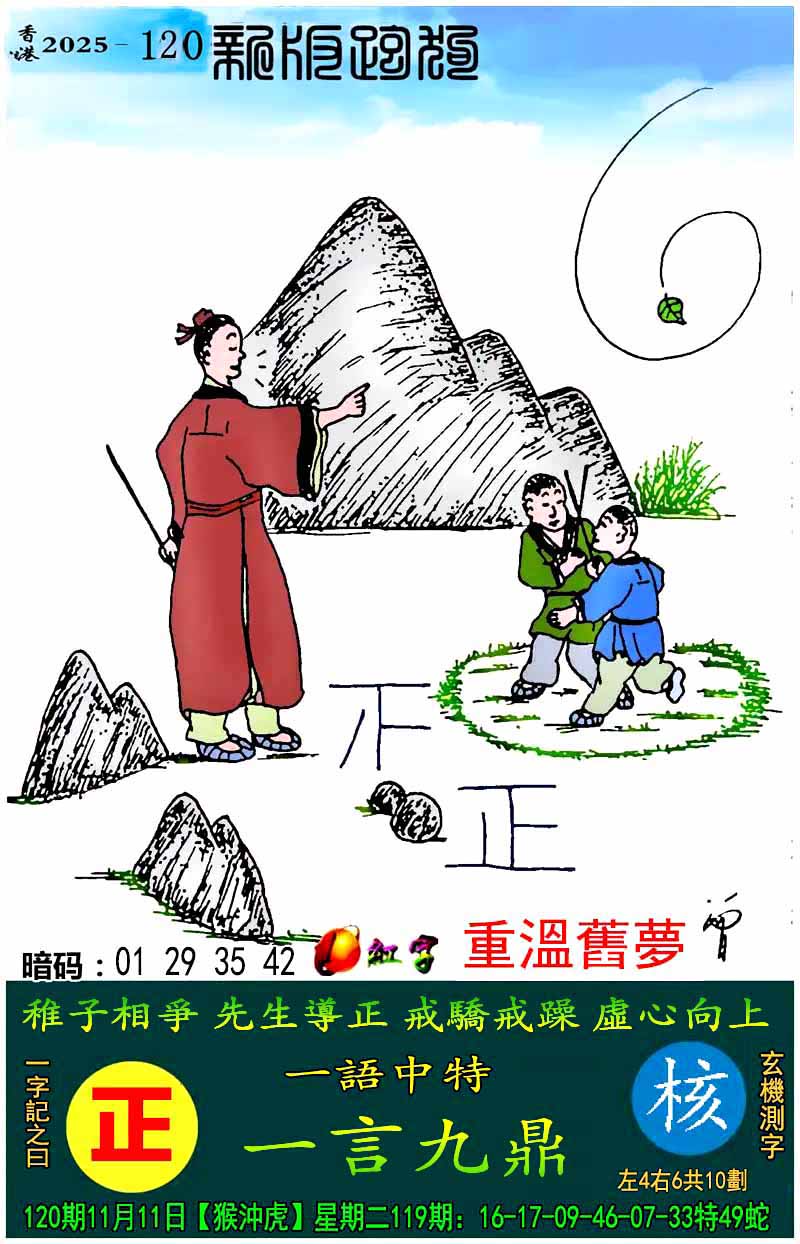主题 :120期:新版跑狗一字記之曰【正】 玄機測字:【核】